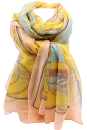 Esarfa pentru dama, stil casual, supra dimensionata, imitatie matase, cu Imprimeu Masini Retro, Hilldi NK04