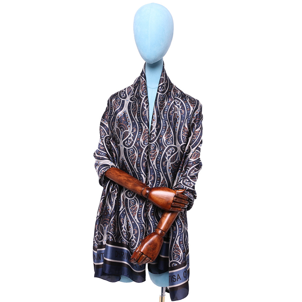Esarfa pentru dama, imitatie matase, stil casual elegant, marime 95 x 185 cm, imprimeu oriental, primavara vara ROCS SK21