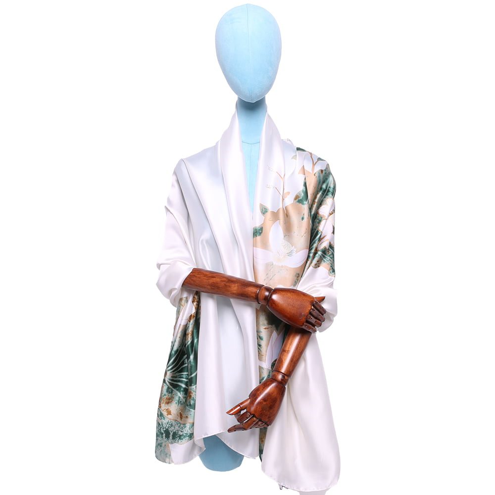 Esarfa pentru dama, stil casual elegant, imitatie matase, marime 95 x 185 cm, imprimeu floare, primavara vara ROCS SK23