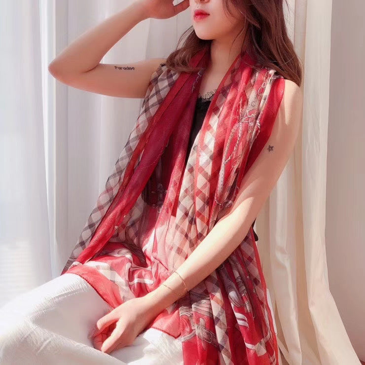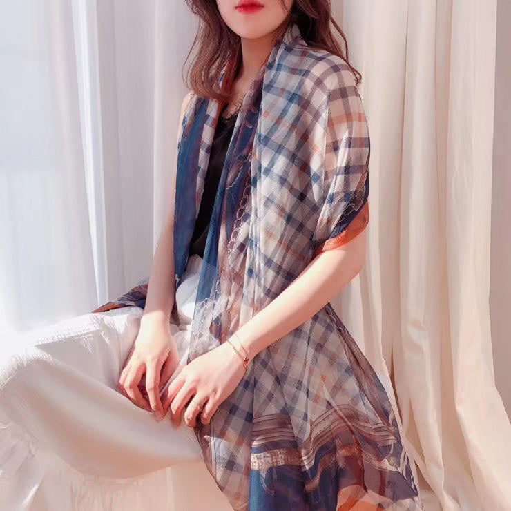 Esarfa Supradimensionata pentru Dama, stil casual eleganta, imitatie Matase, primavara vara, cu Imprimeu Patratele, Hilldi NK07
