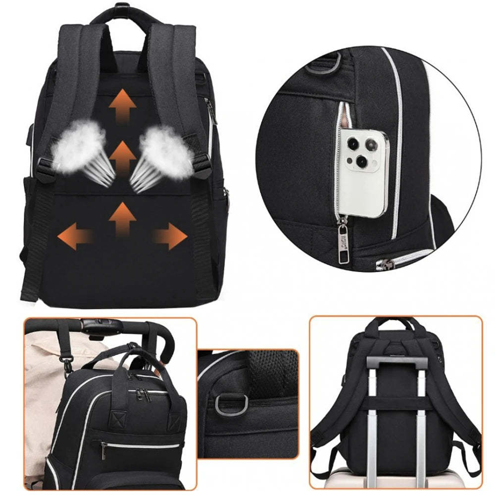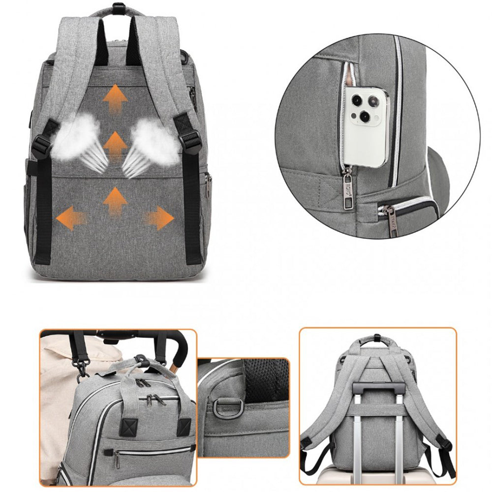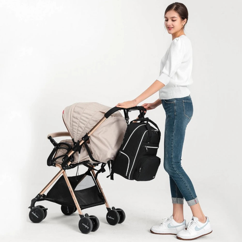 Un rucsac de maternitate care este usor si durabil. Cea mai practica alegere pentru tine si copilul tau. Materialul rezistent la stropi, curelele integrate pentru carucior si interiorul spatios asigura ca aceasta geanta pentru copii are toate caracteristicile de care parintii moderni au nevoie.