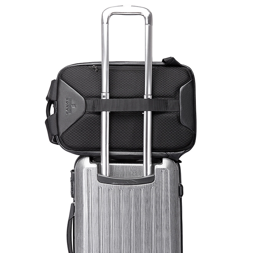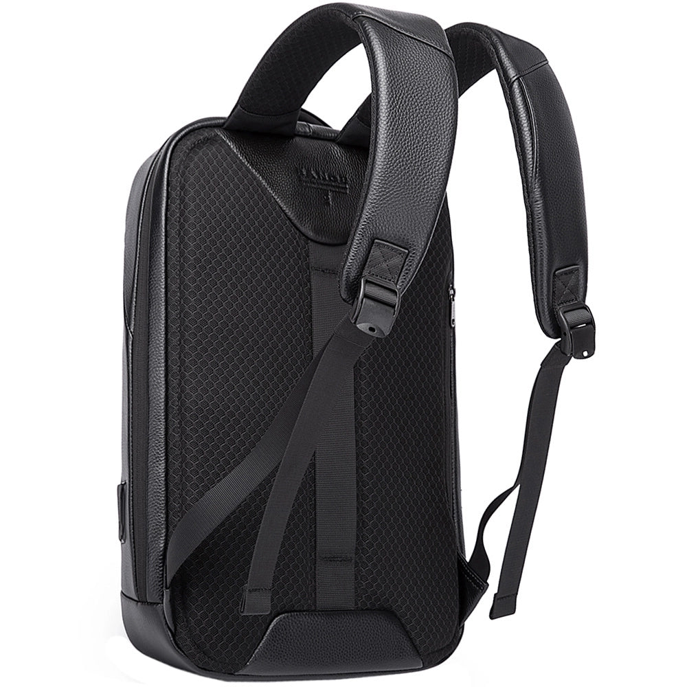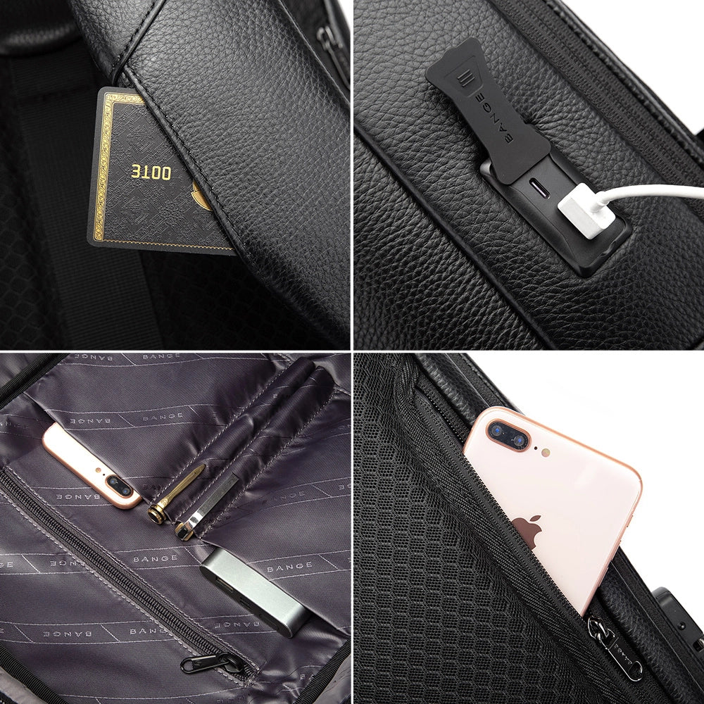 Rucsac smart pentru laptop 15.6 inch, design nou din piele naturala rezistent la apa, cu port USB si lacat TSA, spate respirabil cu fixare de valiza, BANGE BG6621