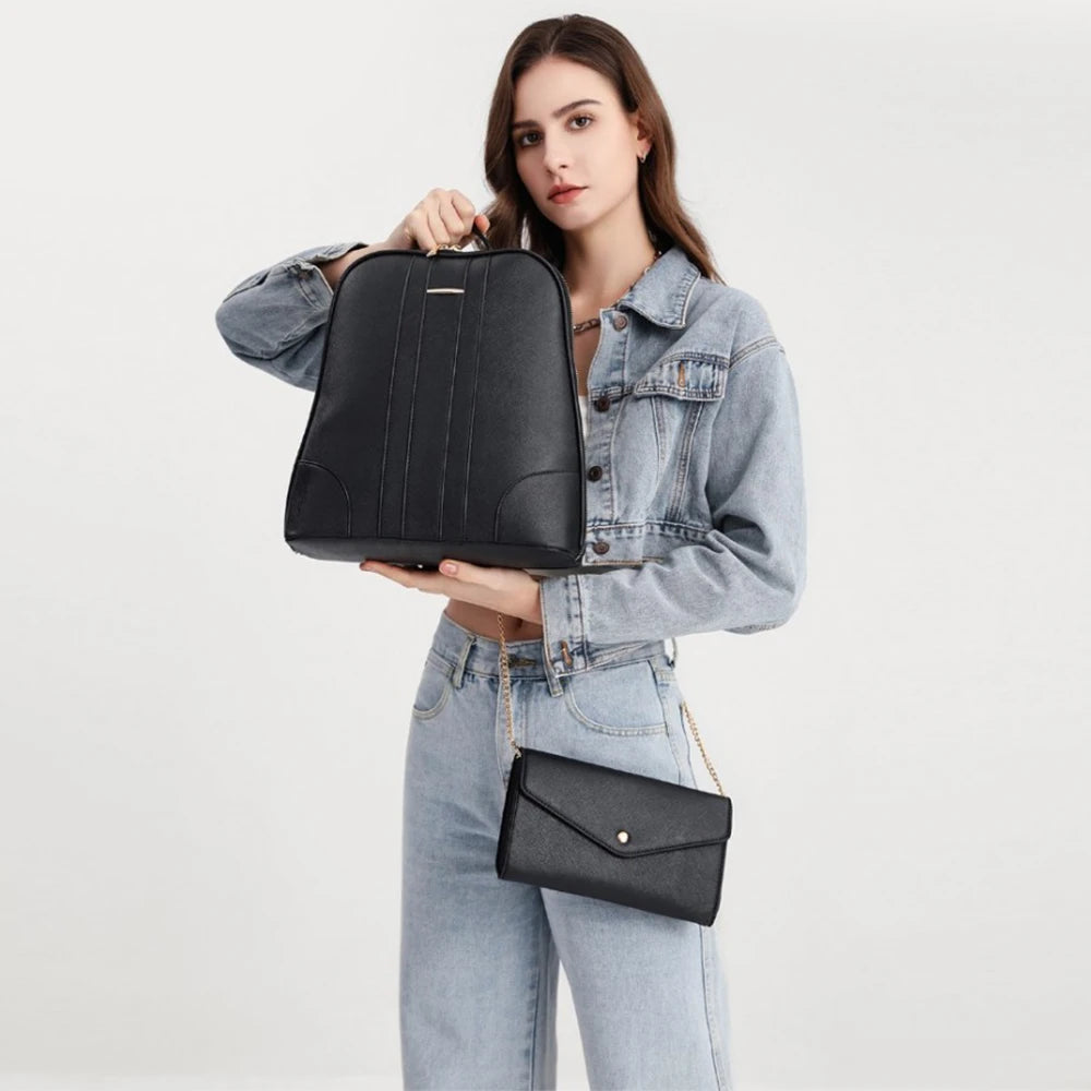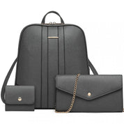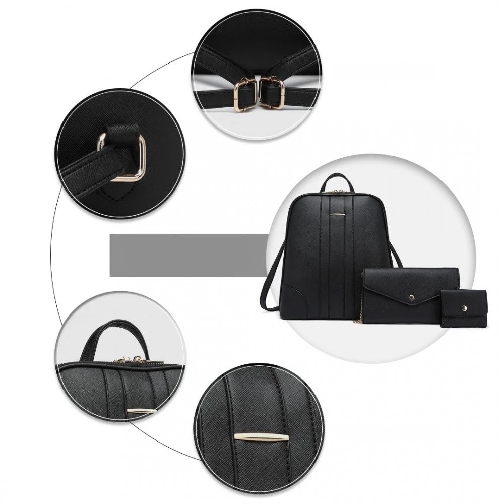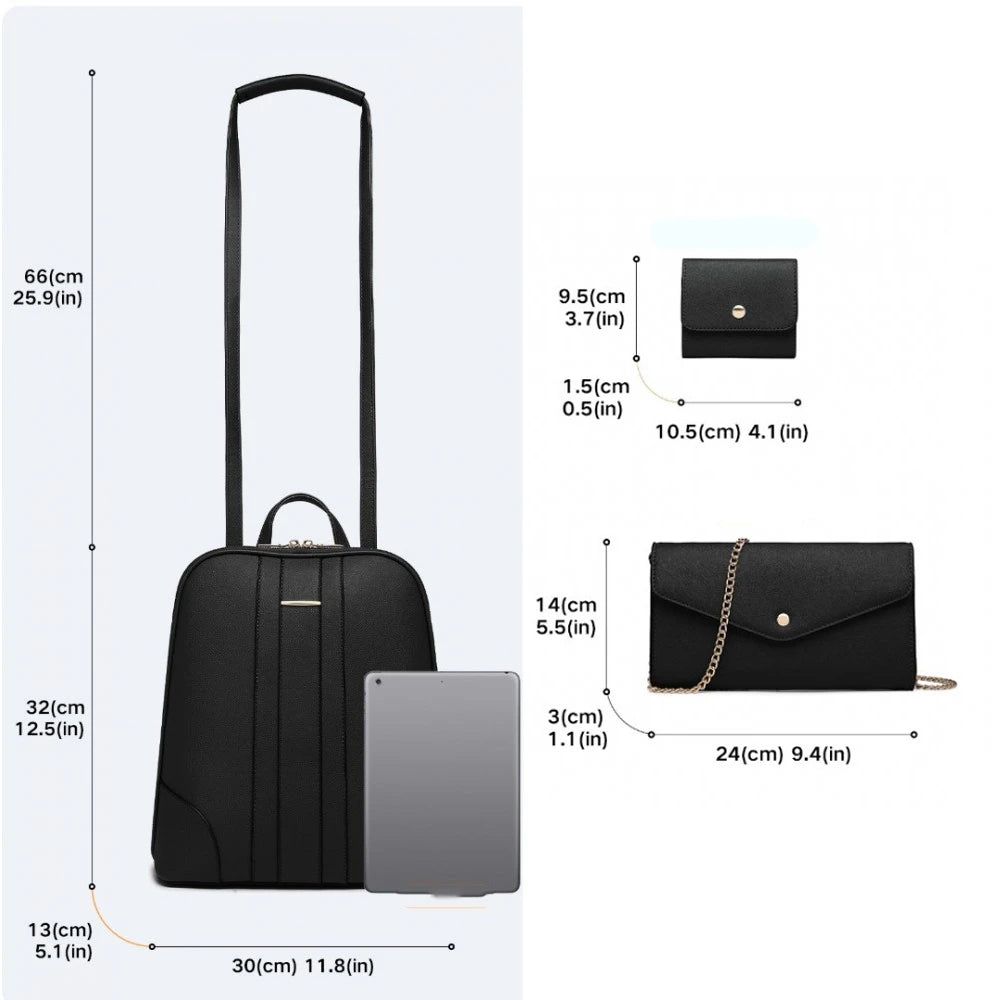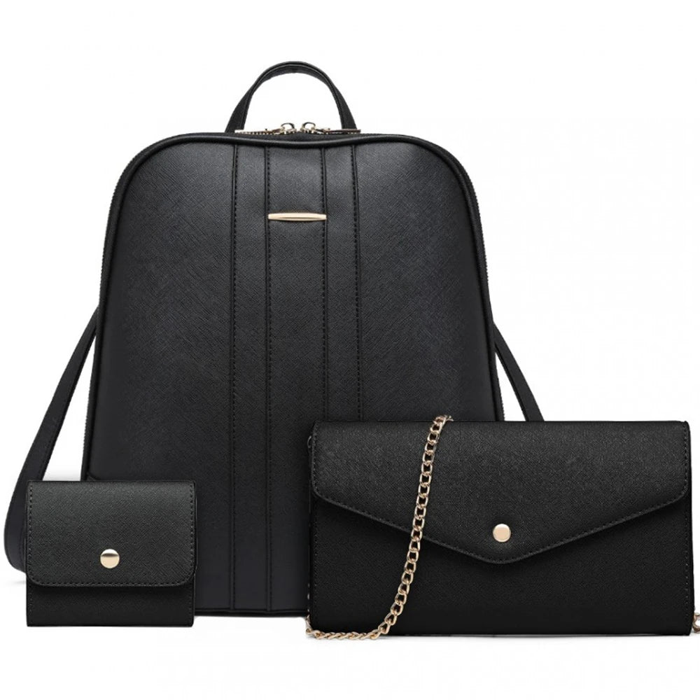 Rucsac elegant pentru dama, set 3 articole, din piele ecologica, rezistent la apa Miss Lulu LD2249